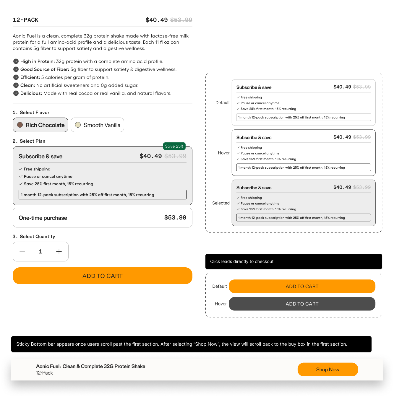 Hand-on implementation of the Shopify and Recharge subscription architecture provided a deeper understanding of technical constraints. This informed my design process by highlighting which features were feasible, allowing me to design UI that was both high-impact and technically sound.